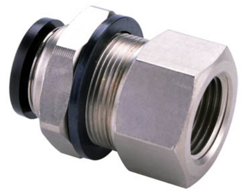AirTACOut of stockAirTAC PMF804D Bulkhead female connector (PT thread), Nickel plated brass body with plastic collar, 8 mm tubing connection,1/2" PT thread, Nickel p...