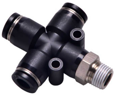 AirTACOut of stockAirTAC PZB804D Threaded cross connector (PT thread), Nickel plated brass body with plastic collar, 8 mm tubing connection,1/2" PT thread, Nickel pl...