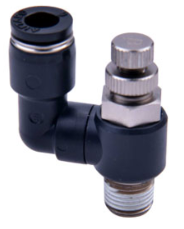 AirTACOut of stockAirTAC PSS1204AD Flow control fitting, Plastic body and plastic collar, 12mm inch tubing connection,1/2" PT thread, plastic, NBR, Black
