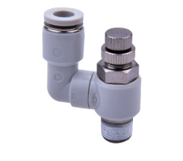 AirTACOut of stockAirTAC PSS1203A Flow control fitting, Plastic body and plastic collar, 12mm inch tubing connection,3/8" PT thread, plastic, NBR, Gray