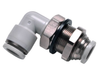 AirTAC PLM12 Bulkhead male elbow connector, Nickel plated brass/plastic with plastic collar, 12 mm tubing connection,Nickel plated brass/plastic, NBR, Gray
